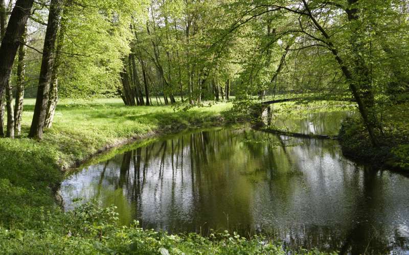 Der 20 Hektar große romantische Park, ein Werk von Choulot, umgibt das Schloss wie ein grünes Schmuckkästchen. Er folgt auf einen Garten aus dem 18. Jahrhundert, der von einem Nachahmer Lenôtres angelegt wurde. Genießen Sie die weiten Perspektiven, die schlangenförmigen Alleen, die Lichtschächte, die Wasserspiegel und die Fabriken, die Haine und Wälder und nicht zu vergessen die Insel mit ihrer hübschen Jugendstilbrücke.