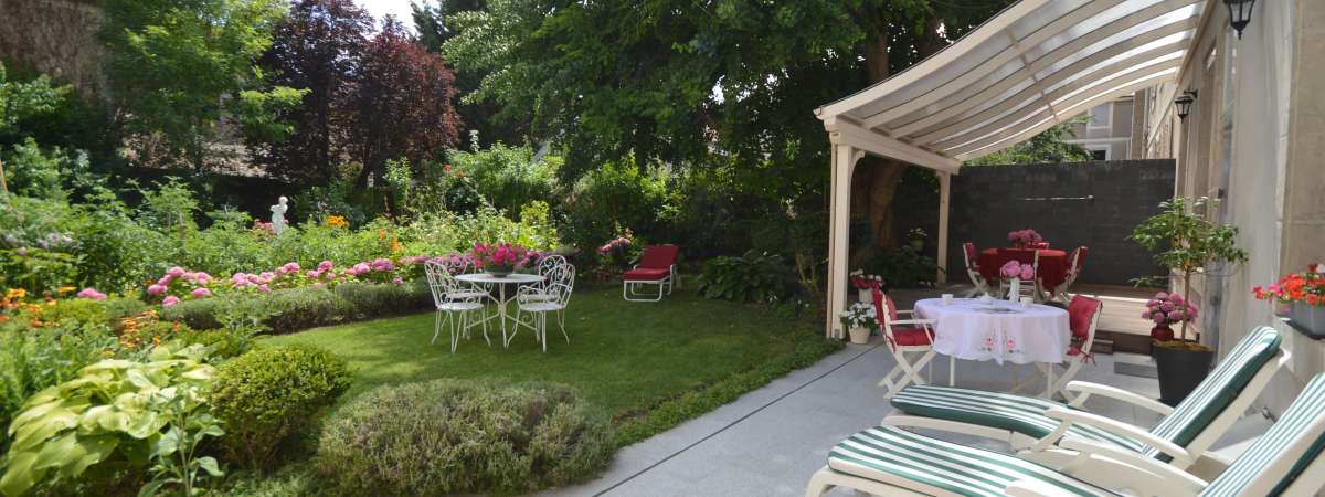 Zugang zur Terrasse im Garten (Tisch und Stühle stehen zur Verfügung).