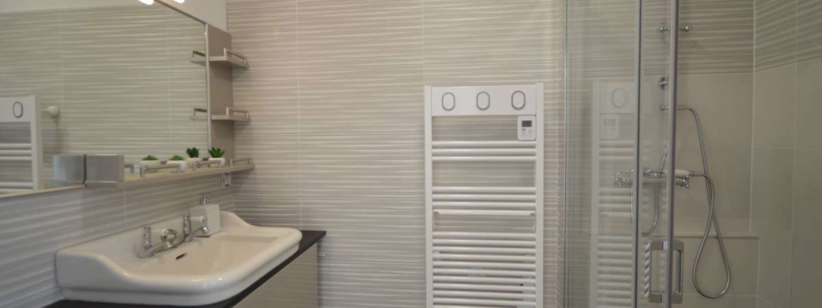 Zimmer mit Blick auf den Garten komplett neu, mit Badezimmer (große Dusche) und separatem WC. Bett 140x190 (zwei Personen), Kleiderschrank mit Garderobe, Nachttisch, ein Stuhl und ein Sessel, kleiner Tisch mit Courtesy-Tablett (Wasserkocher, Beutel mit löslichem Kaffee, Tee, Kräutertee ...)