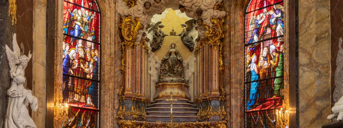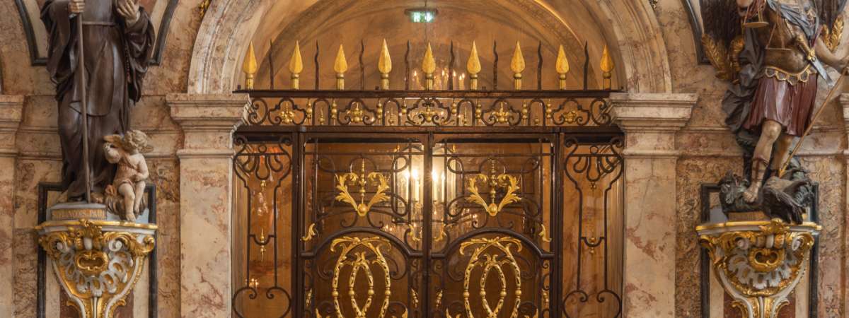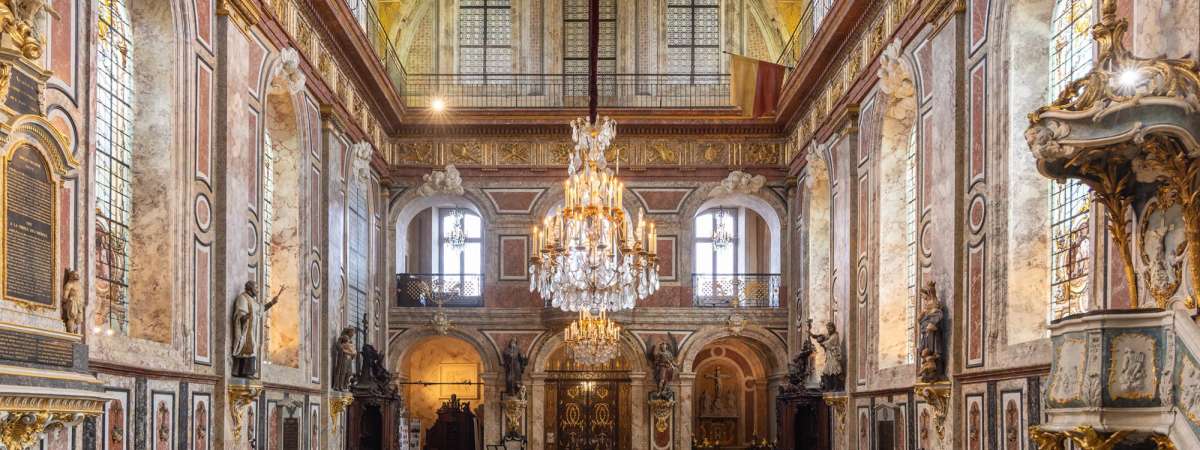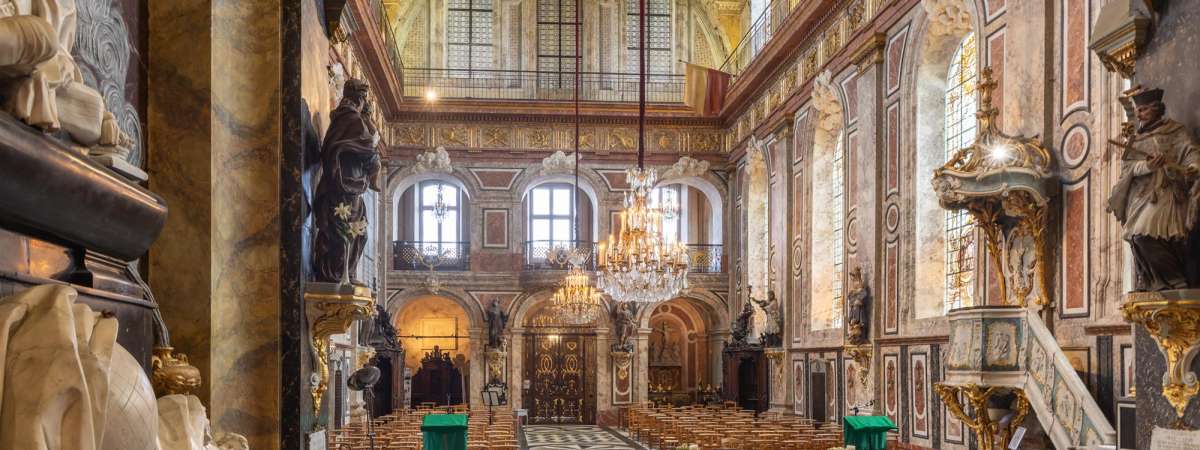 A modest chaple and sanctuary lay until 1738 on the site of the graves of the Burgundians who died at the Battle of Nancy (1477). Over time, it had been remodelled and expanded many times until finally it was razed by Stanislas. Emmanuel Héré was commissioned by Stanislas to build a baroque church in which he lies at rest along with his wife, close to the heart of his daughter Maria Leszczynska, wife of king Louis XV.