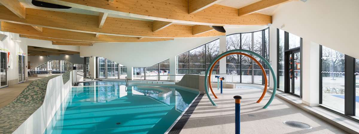 Sports enthusiasts: indoor and outdoor swimming pools for training.