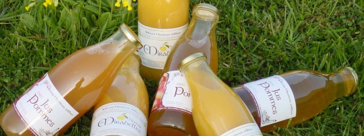Les Vergers Partagés de Lorraine proposent divers jus de fruits et nectars qui varient en fonction des saisons (jus de pommes aux épices, jus de pommes cannelle, nectar de mirabelles, nectar de cerises....) tout en respectant une démarche de production avec des fruits locaux. Le pressage de fruits est également proposé en fonction de la période.