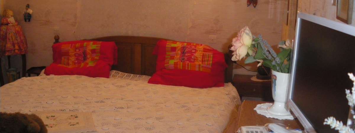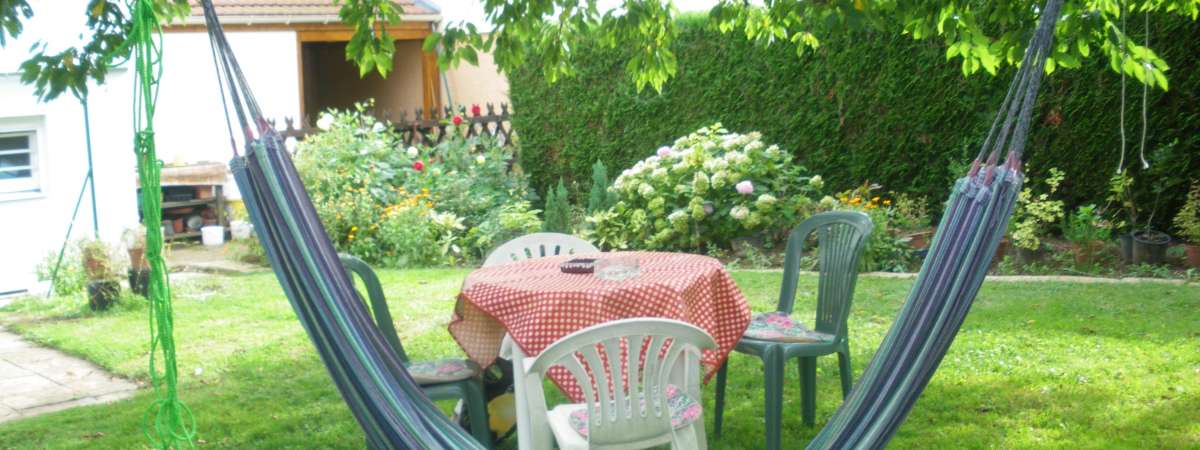 Maison d'hôte composée de 2 chambres d'environ 14m² au rez de chaussée. 1 chambre à 1 lit (1.80/2m) et 1 chambre à 2 lits (0.90/2m) donnant sur jardin et forêt.