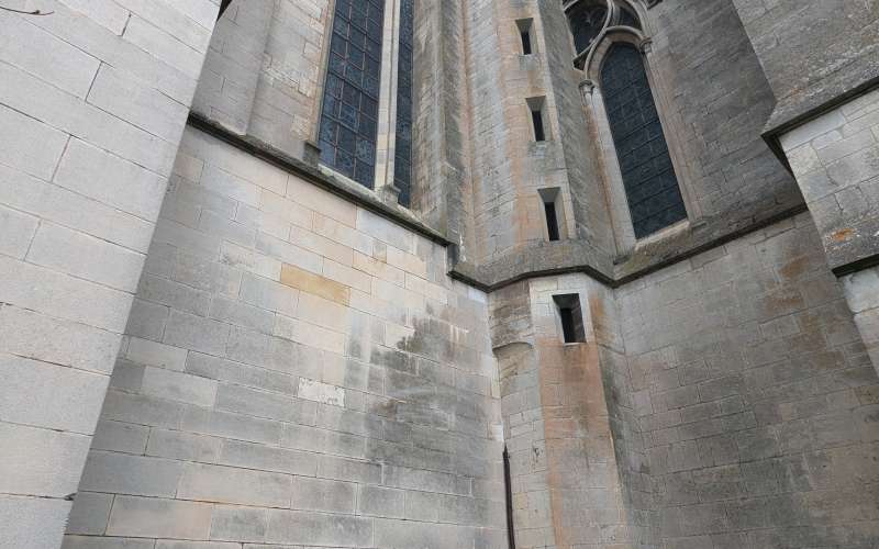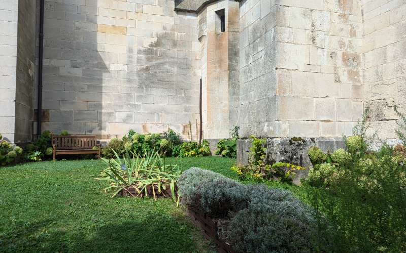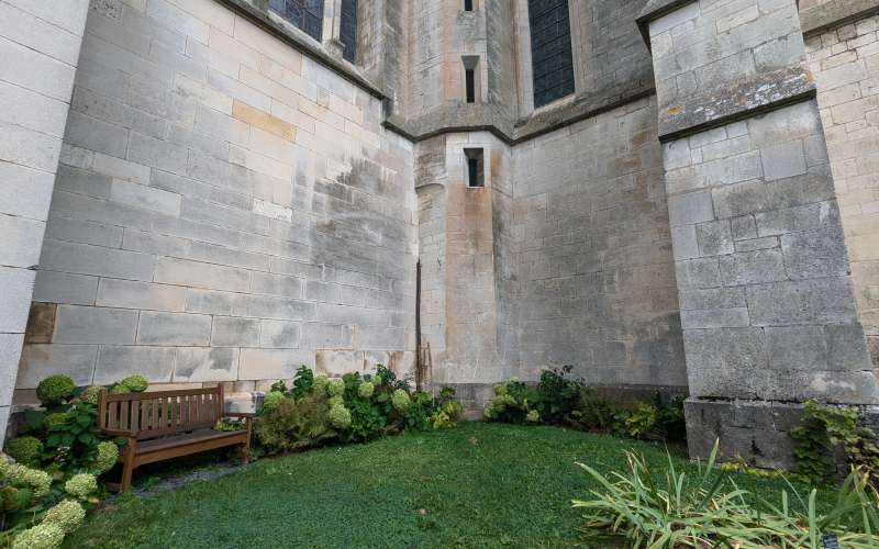 L’abside de la Cathédrale Saint-Étienne, restée longtemps à l’abri des regards, offre aujourd’hui au public ses contreforts majestueux dans un écrin de verdure.