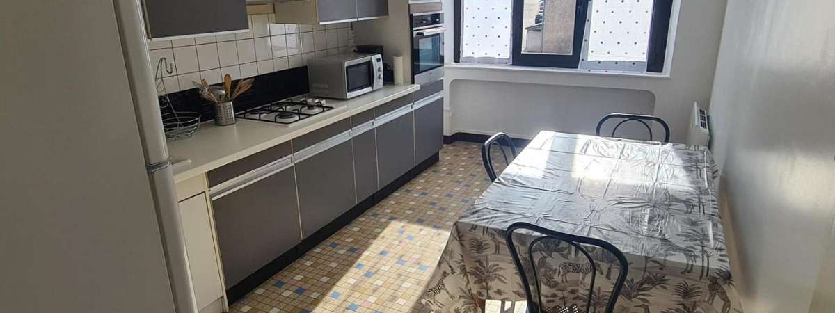 Appartement au 1er étage d'un petit immeuble au centre du village, avec parking non-privatif face au gîte.