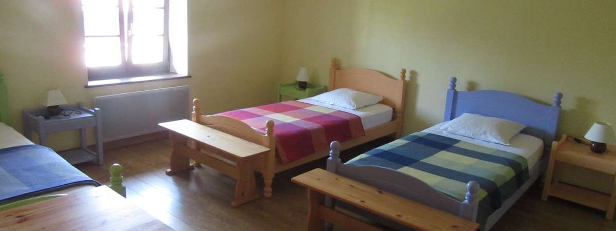 Rez-de-chaussée avec cuisine, salon (blibliothèque et jeux de société), salle d'eau/WC. Trois chambres à l'étage avec salle de bains et WC individuel.
