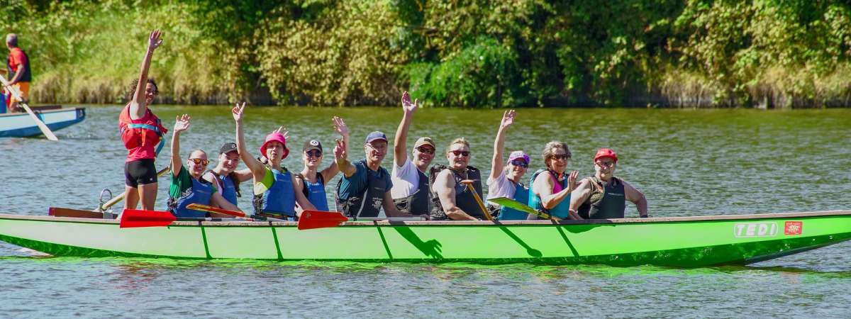 Beleide en begeleide drakenbootuitstap op de gekanaliseerde Moezel met ontdekking van de fauna, flora en het leven op de rivier.